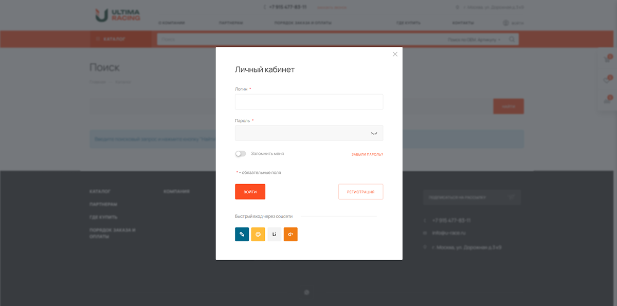 - VIN — идентификация автомобиля через API Laximo с отображением совместимых деталей.