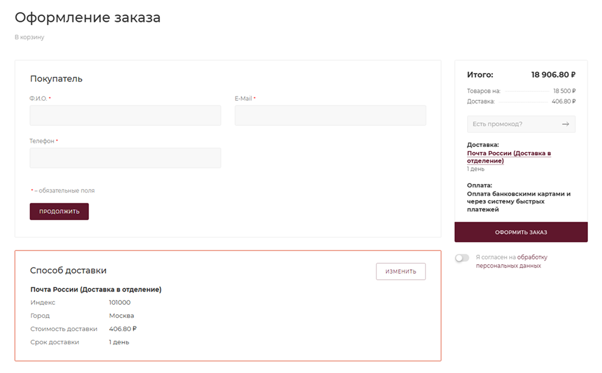 Покупатель может выбрать товар, оплатить его онлайн и сразу увидеть подходящие варианты доставки — все в одном процессе, без ручных действий со стороны администратора.