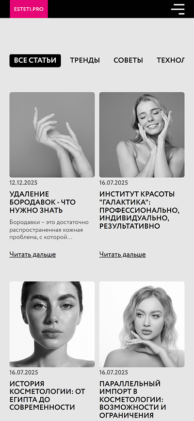 esteti.pro — специализированный цифровой проект в области эстетической медицины и косметологии.