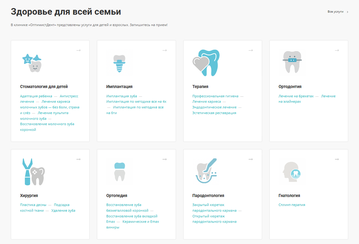Разработка сайта для стоматологической клиники "Оптимистдент"