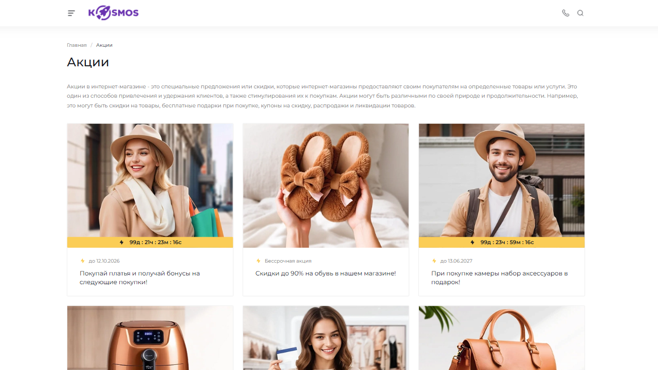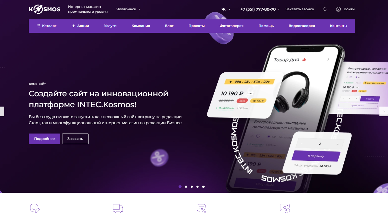 INTEC.KOSMOS — это готовое профессиональное решение на базе 1С-Битрикс, которое позволяет запустить интернет-магазин нового поколения в кратчайшие сроки. Шаблон разработан с учетом современных требований к электронной коммерции и ориентирован на рост продаж, удобство пользователей и масштабирование бизнеса.