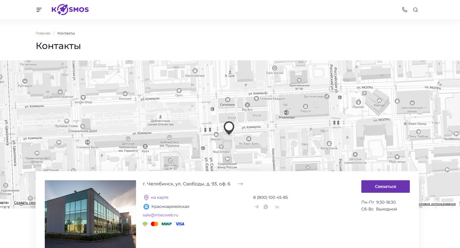 Карточка товара в INTEC.KOSMOS — это полноценная продающая страница, которая содержит всю информацию, необходимую для принятия решения о покупке.