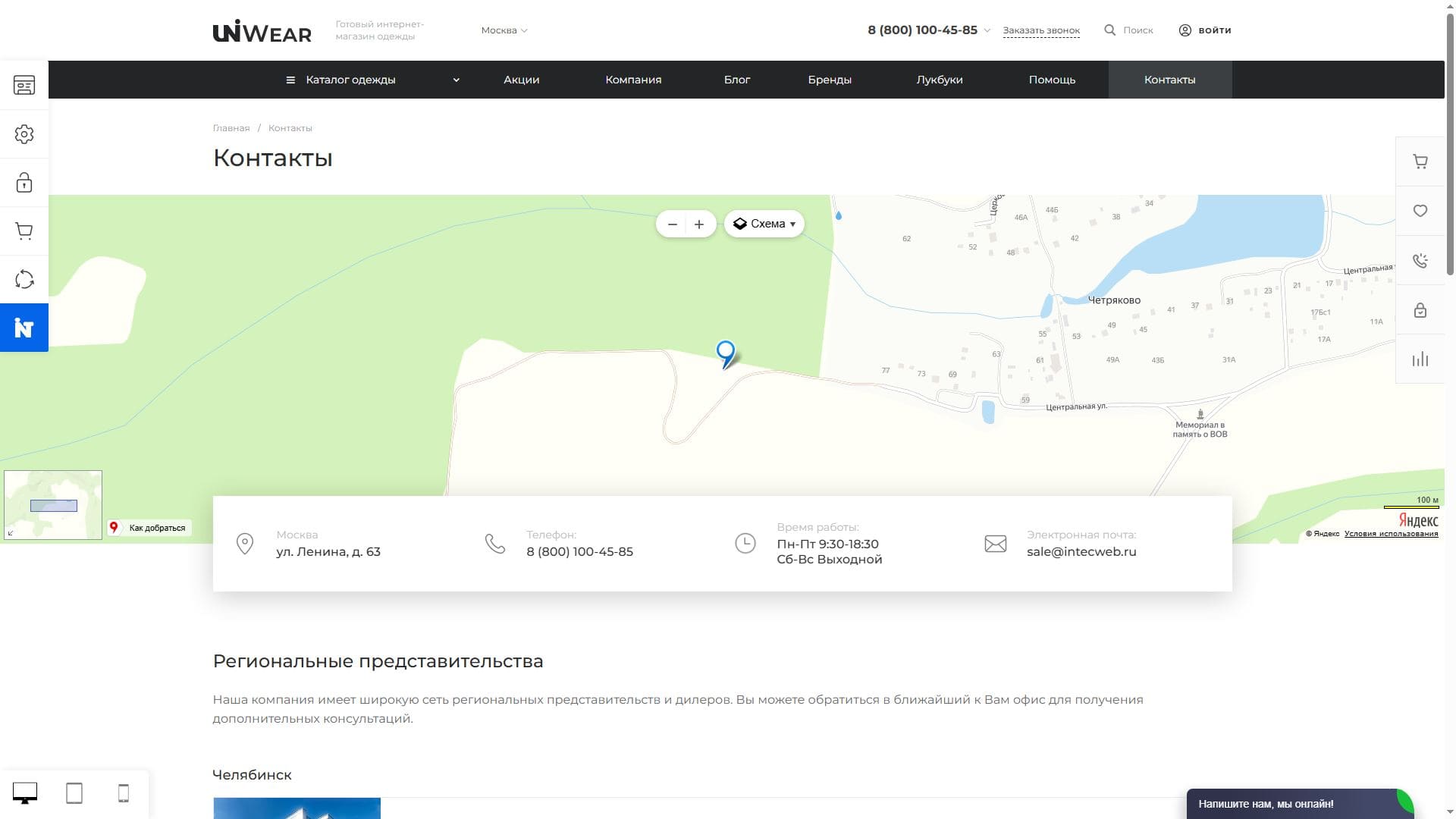 - страница контактов;