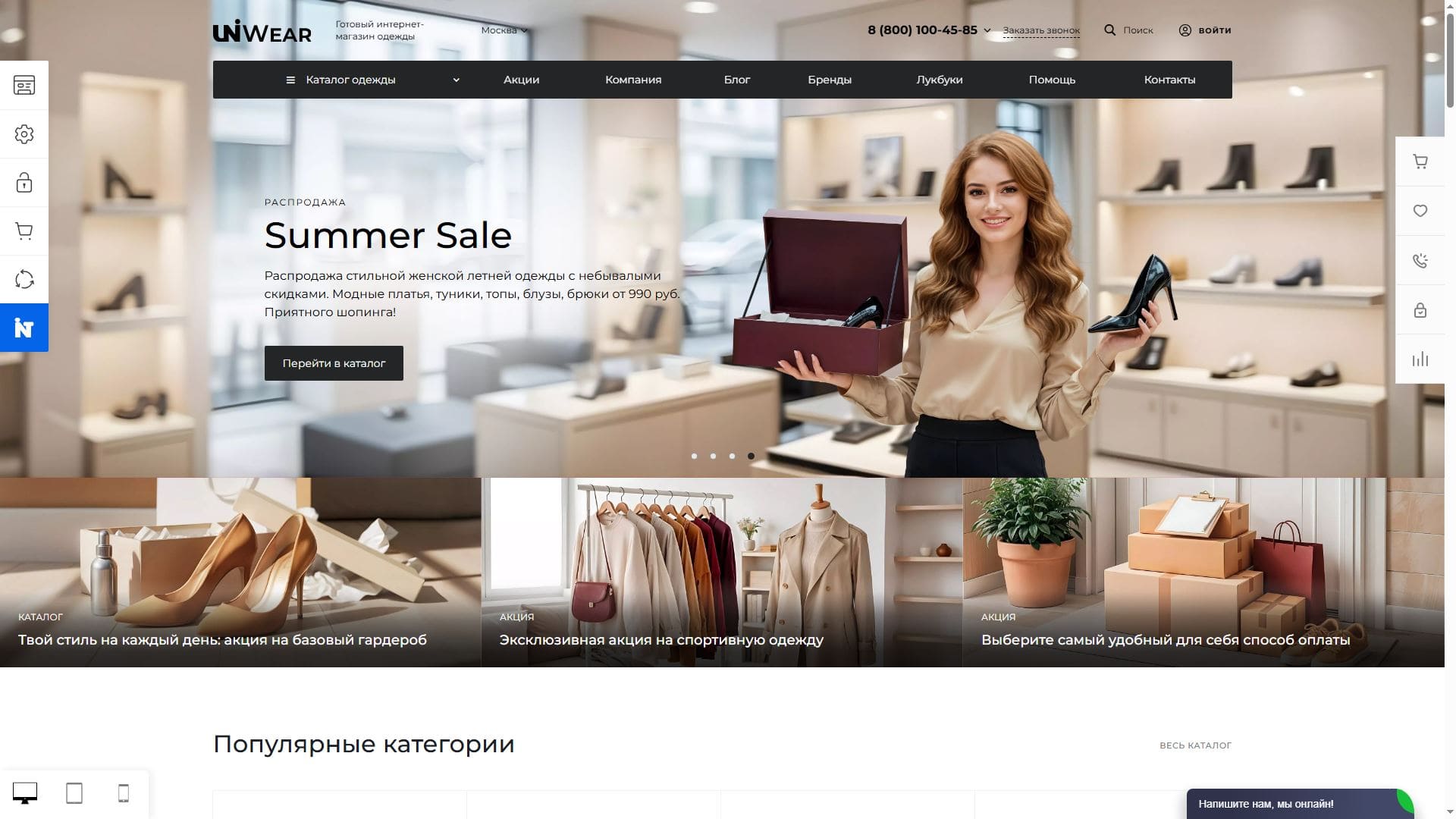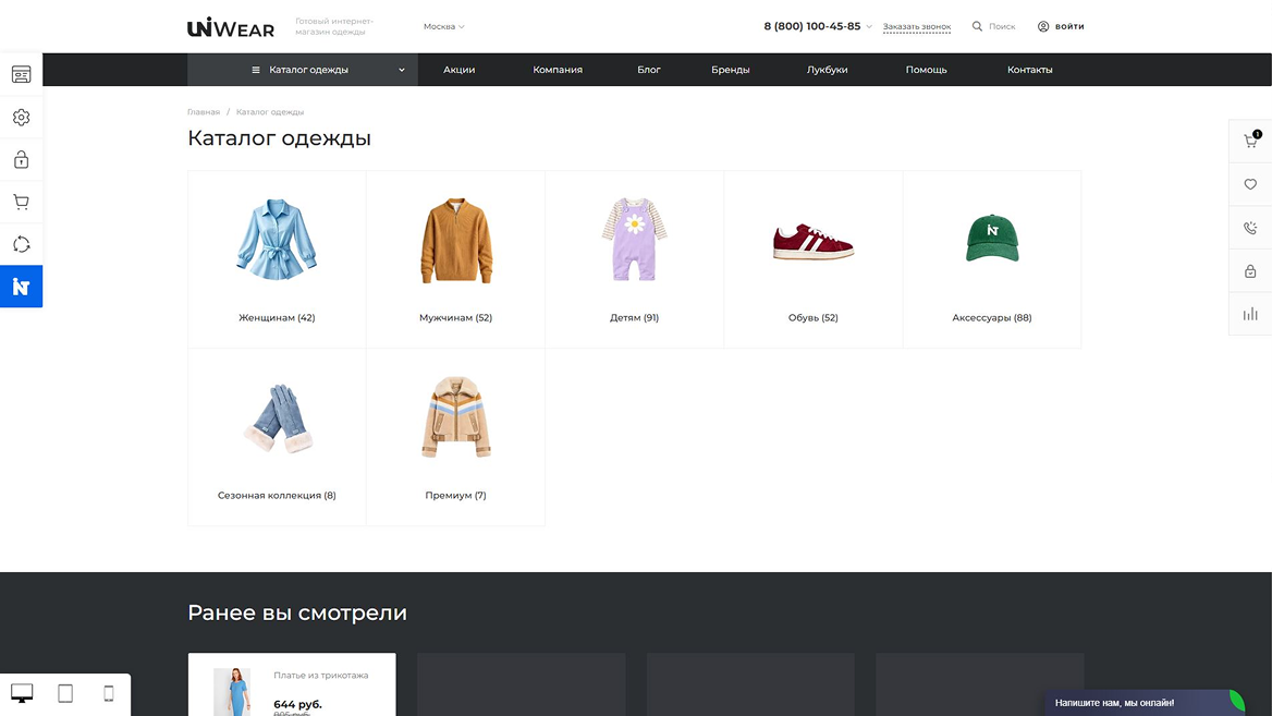 Помимо доступности и быстрого старта готовый сайт магазина одежды отличается: